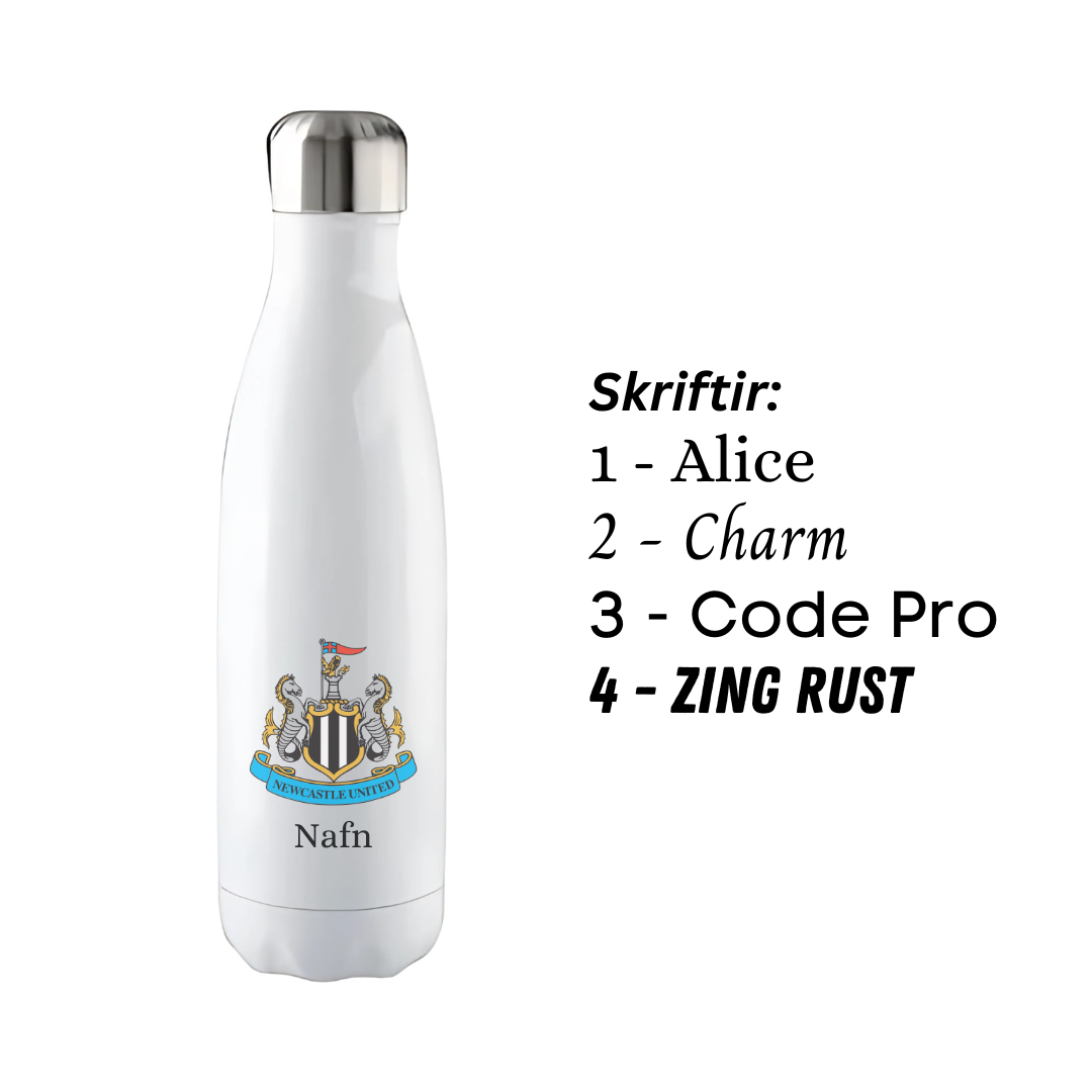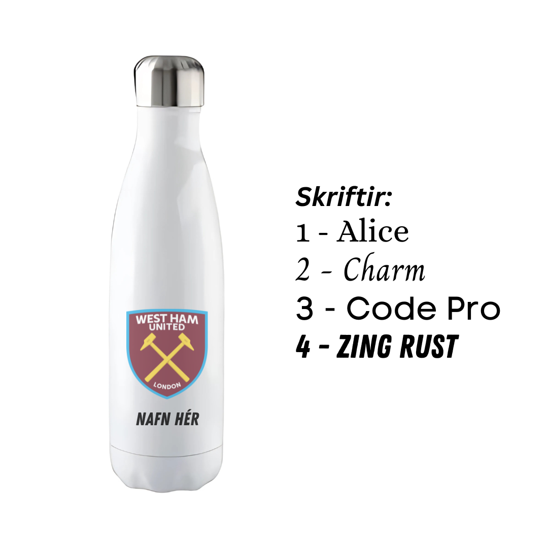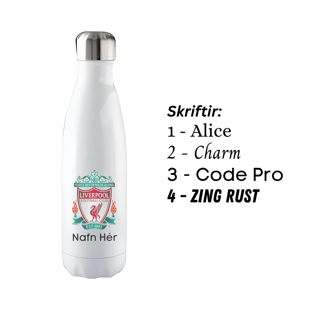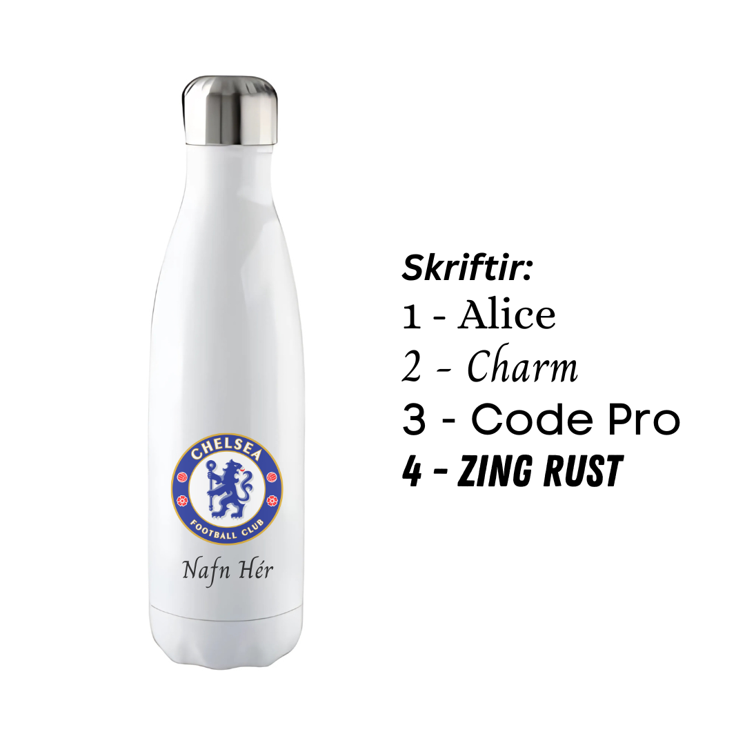 Veldu þitt uppáhalds fótboltalið og skrifaðu nafnið sem á að fara á flöskuna í textaboxið og veldu milli 4 skrifta.