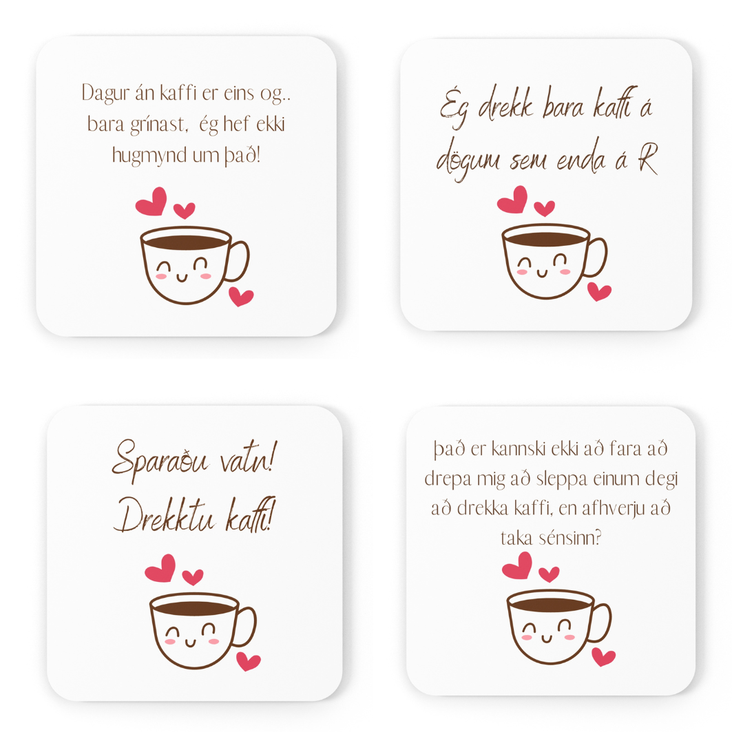 Það eru 4 mismunandi glasamottur í pakkanum.