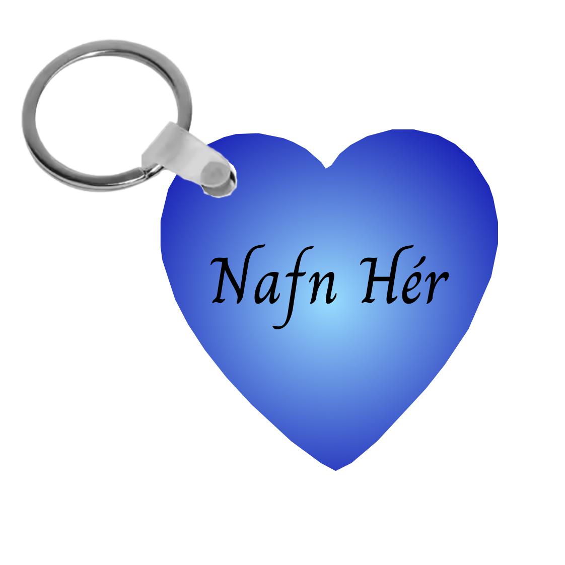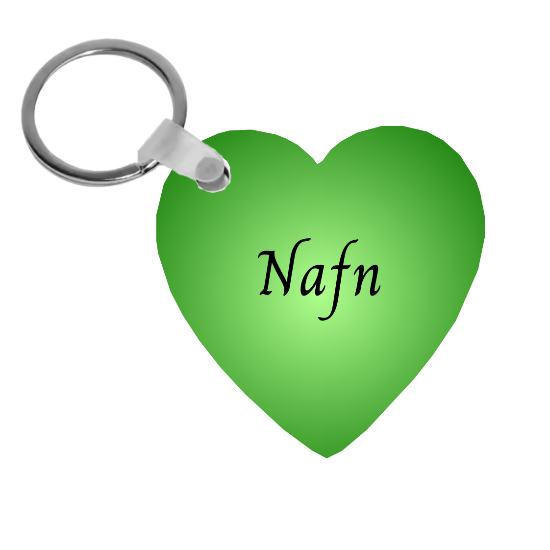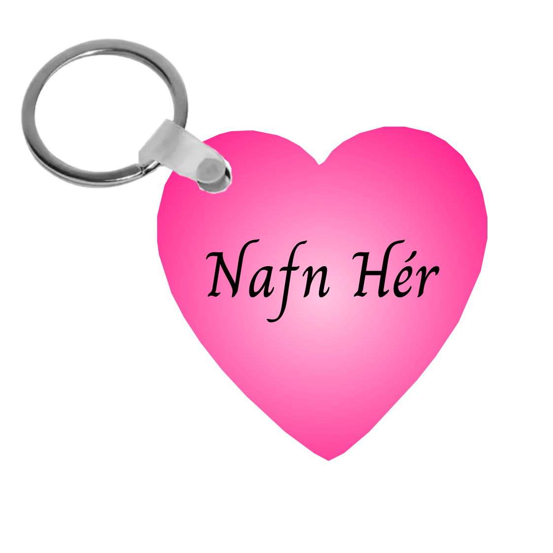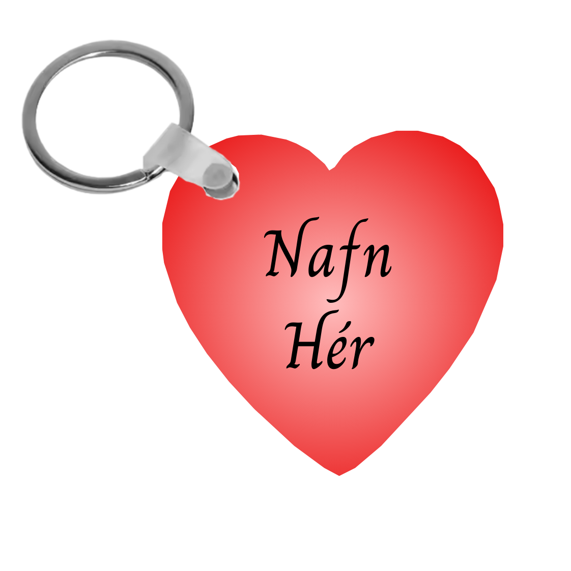 Hjartalaga lyklakippa merkt með nafni.