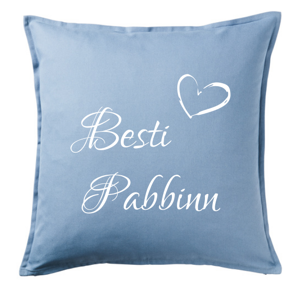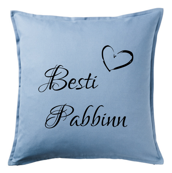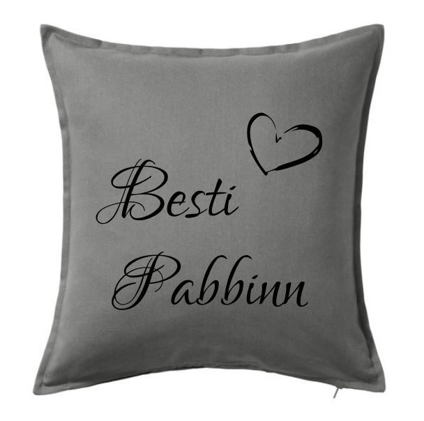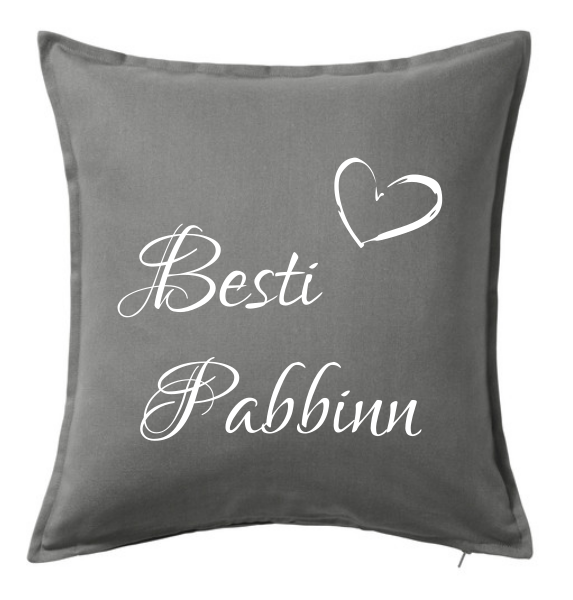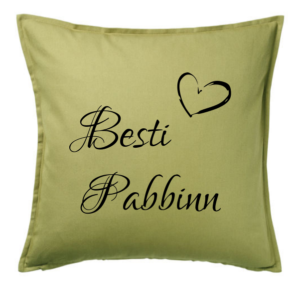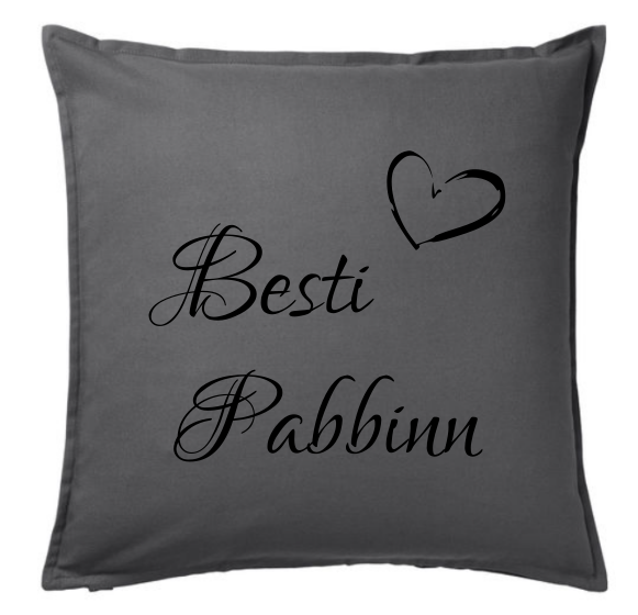 Æðislegur púði sem kemur í 7 litum og hægt er að velja svart eða hvítt letur.